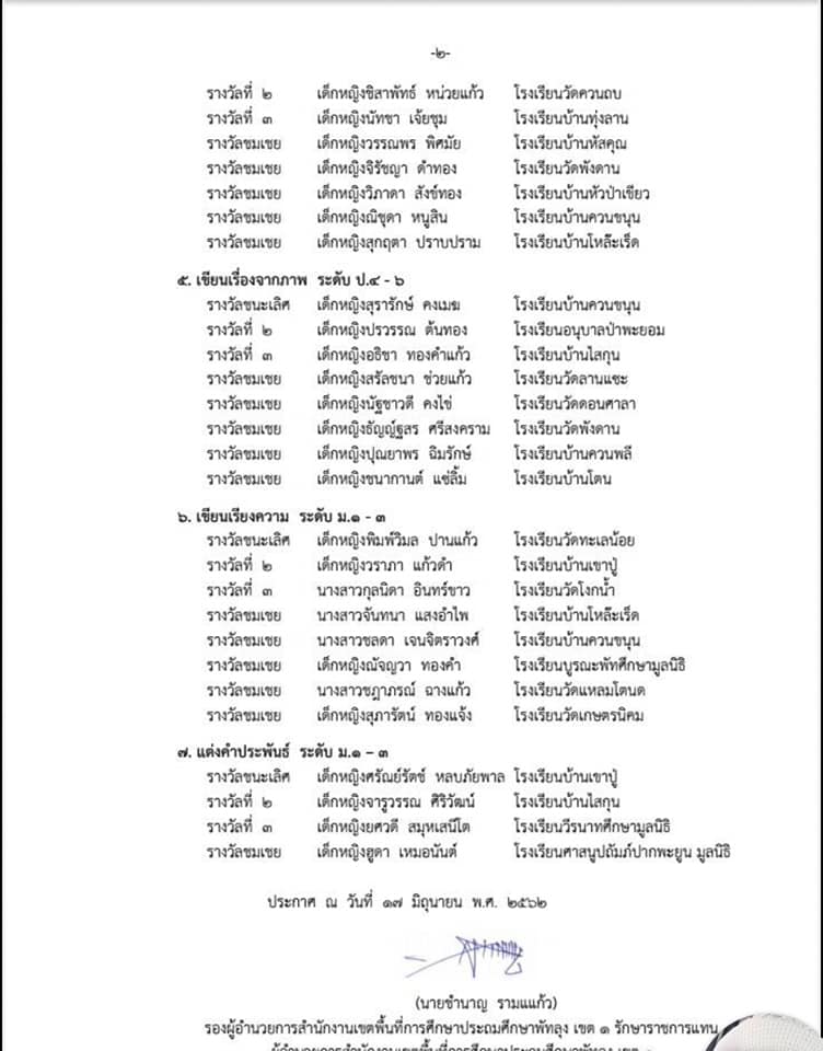 รางวัลชมเชย การเขียนเรียงความเนื่องในวันภาษาไทย